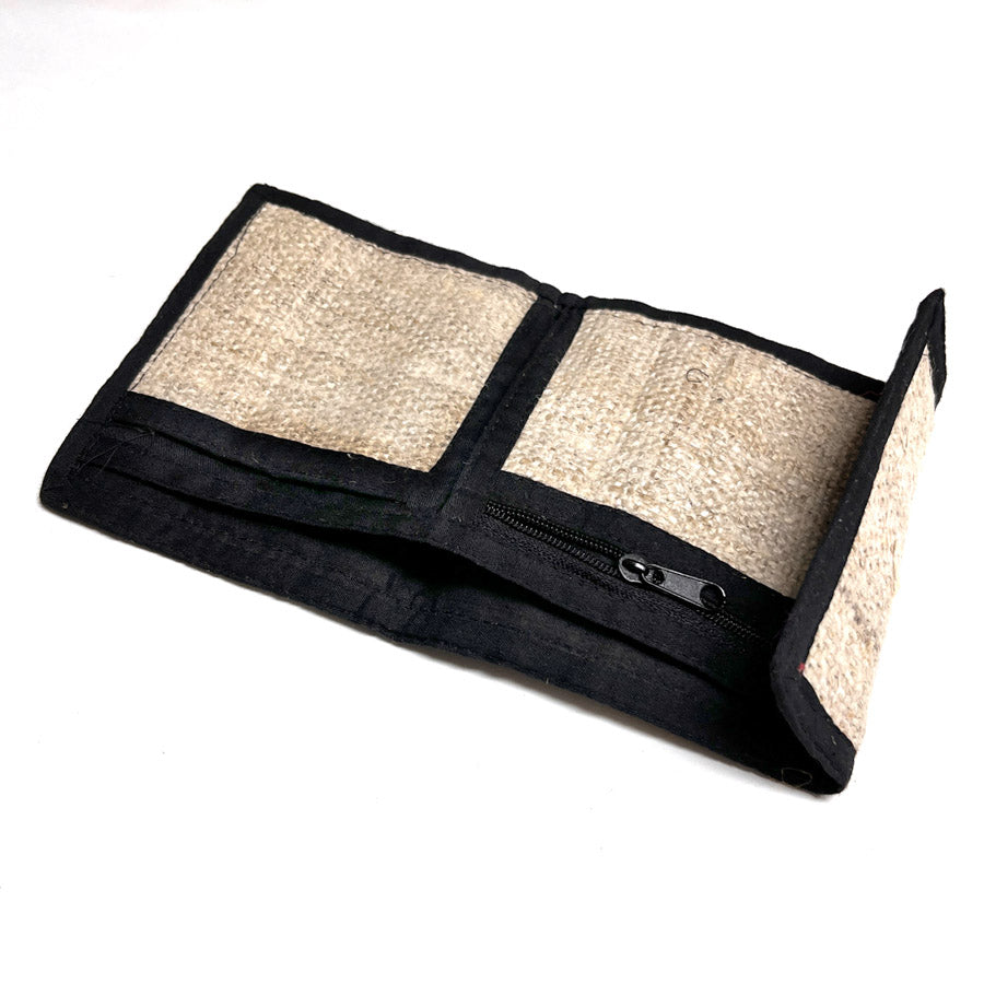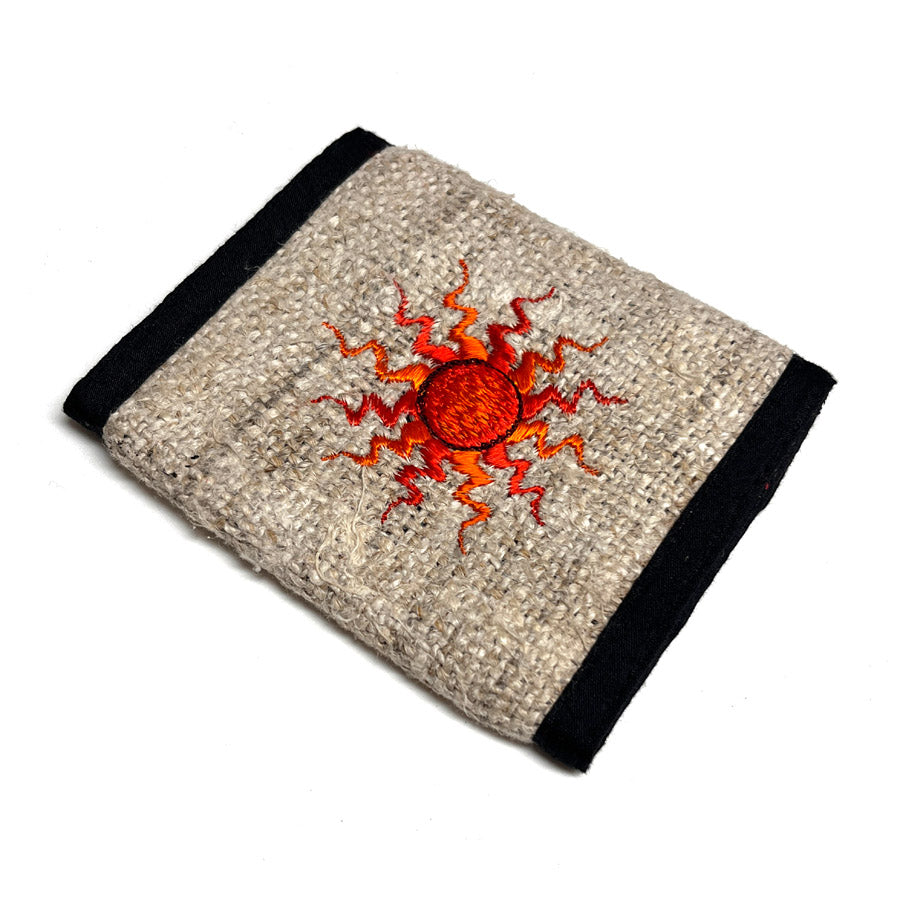 Lompakko on valmistettu kestävästä hamppu- ja puuvillakankaasta, mikä tekee siitä eettisen ja ympäristöystävällisen valinnan. Sen etuosaa koristaa näyttävä, applikoitu aurinko. Jokainen aurinkokuvio on ainutlaatuinen, joten saat käsiisi todellisen uniikin kappaleen!