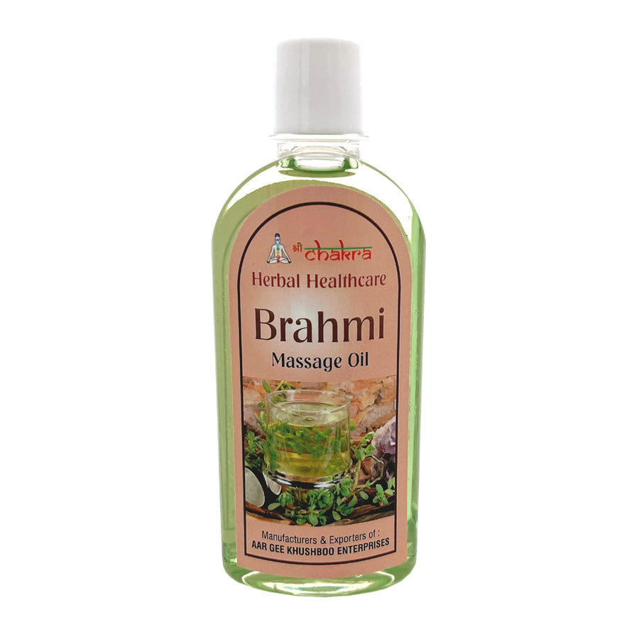 Brahmi Massage Oil on ayurvedinen hierontaöljy, joka rauhoittaa mieltä ja tukee kehon hyvinvointia. Öljy sisältää brahmi-yrttiä, joka tunnetaan perinteisessä intialaisessa lääketieteessä sen stressiä lievittävistä ja keskittymistä parantavista vaikutuksista.