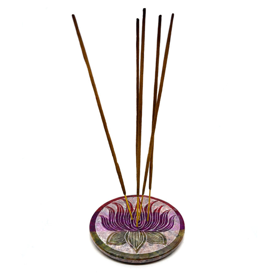 The incense can be extinguished conveniently in the holder by rotating the burning end against the base.
