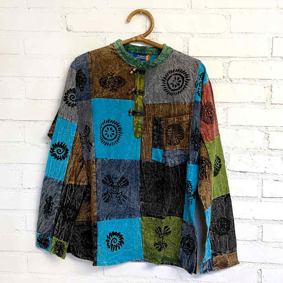 Rento malli sopii niin miehille kuin naisille. Tämä paita on todellinen katseenvangitsija, sillä se on valmistettu lukuisista erilaisista tilkuista, tehden jokaisesta paidasta täysin uniikin ja omanlaisensa taideteoksen. Tilkkujen päälle on lisäksi painettu erilaisia symbolisia kuvioita.