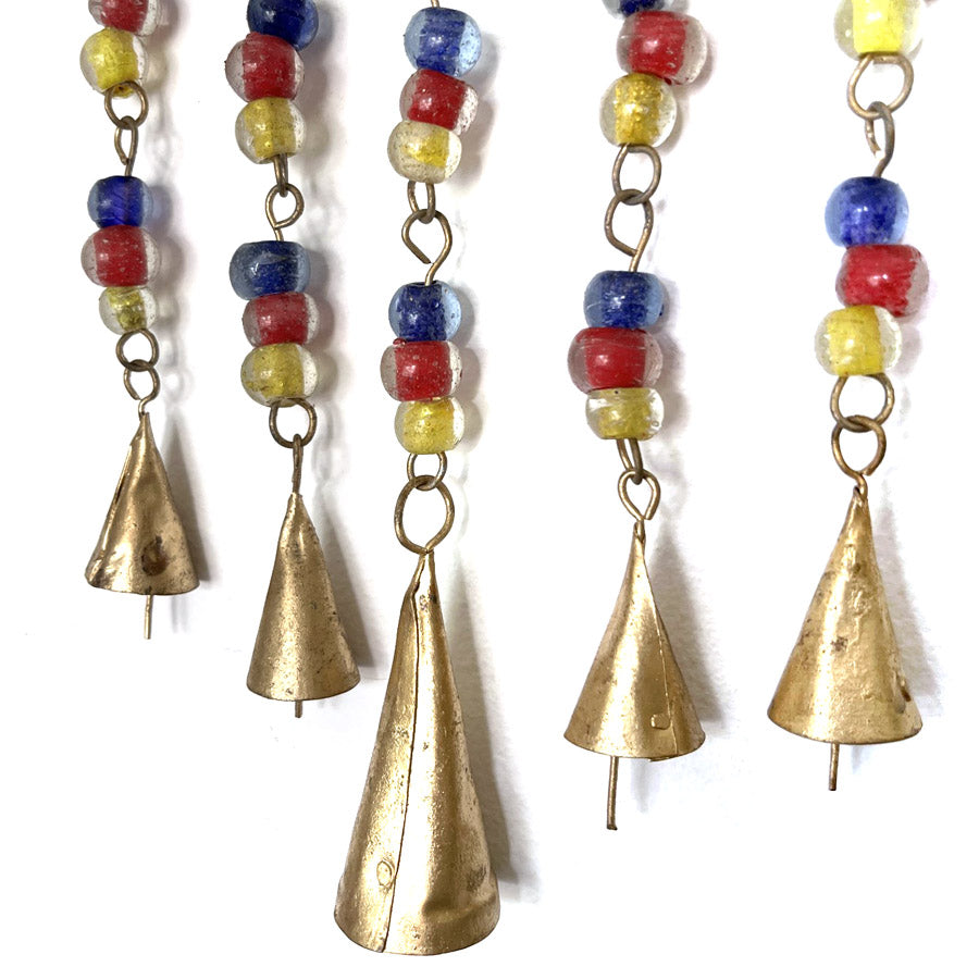 Ketjut on koristeltu värikkäillä helmillä, jotka noudattavat järjestystä sini-puna-keltainen. Keskimmäinen kello on ketjuista suurin.