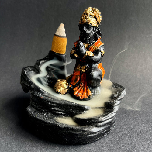 Hanuman backflow suitsuketeline on suunniteltu backflow-kartiosuitsukkeiden polttamiseen. Patsaan muodot ohjaavat suitsukkeen savun alaspäin, luoden liikkuvan vesiputouksen kaltaisen ilmiön.