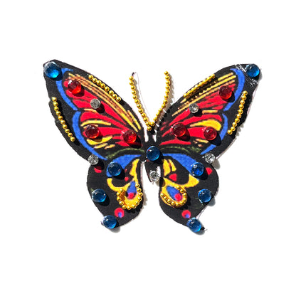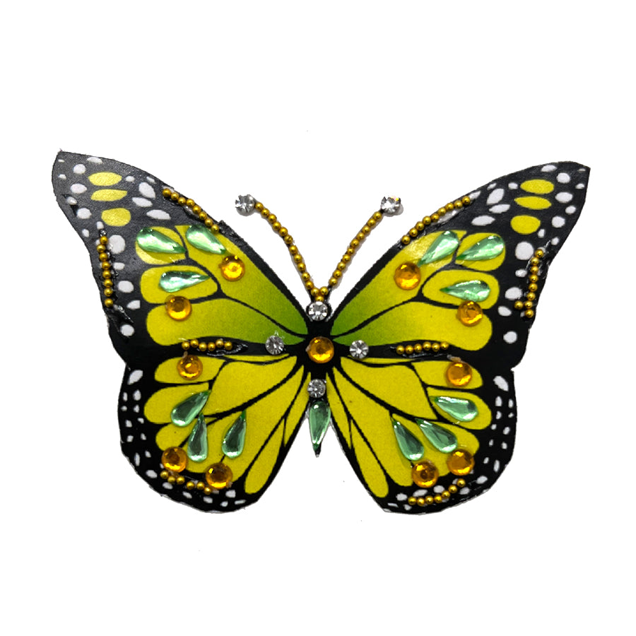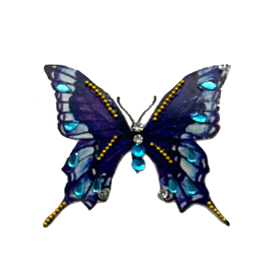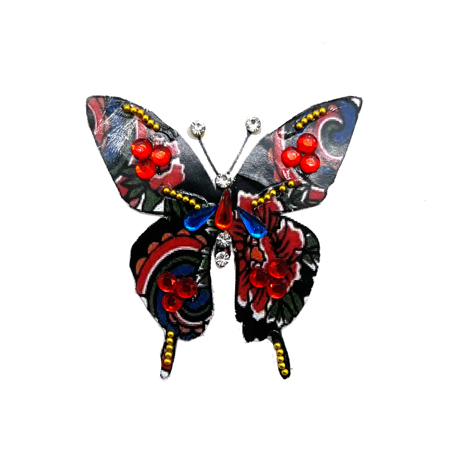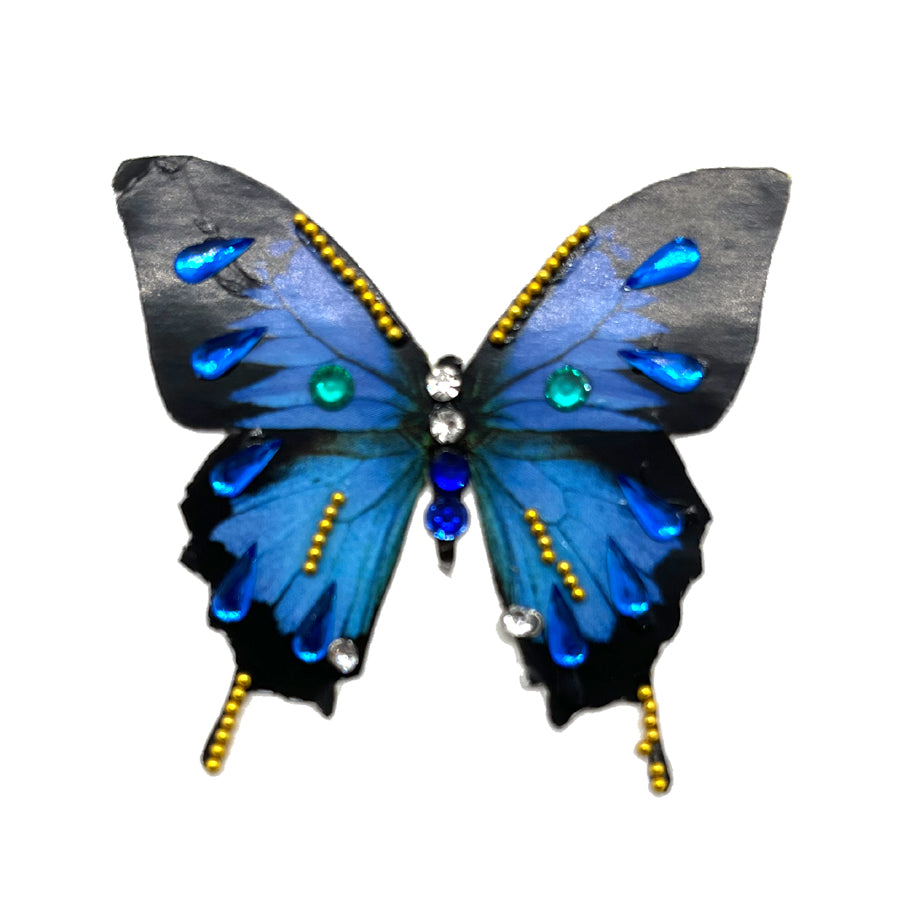 Intiassa koristellut tarrat, joissa perhonen levittää siipensä kimaltavien koristeyksityiskohtien kanssa. Jokainen tarra on uniikki – kimalluksen sävyt saattavat vaihtua hitusen.