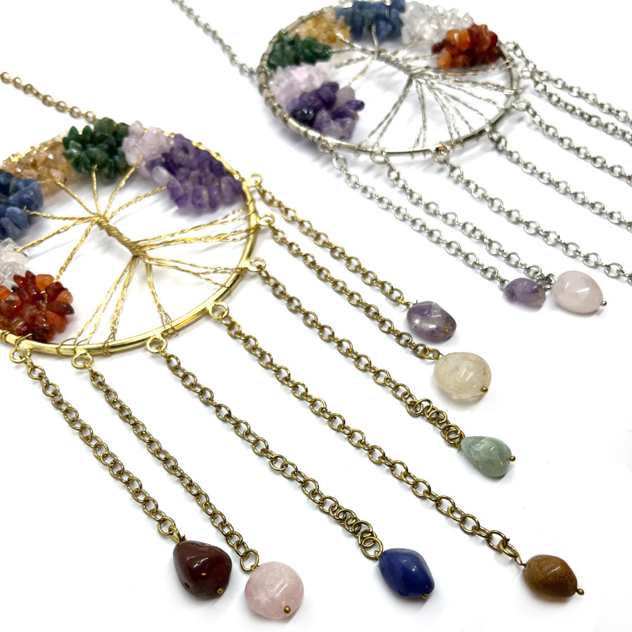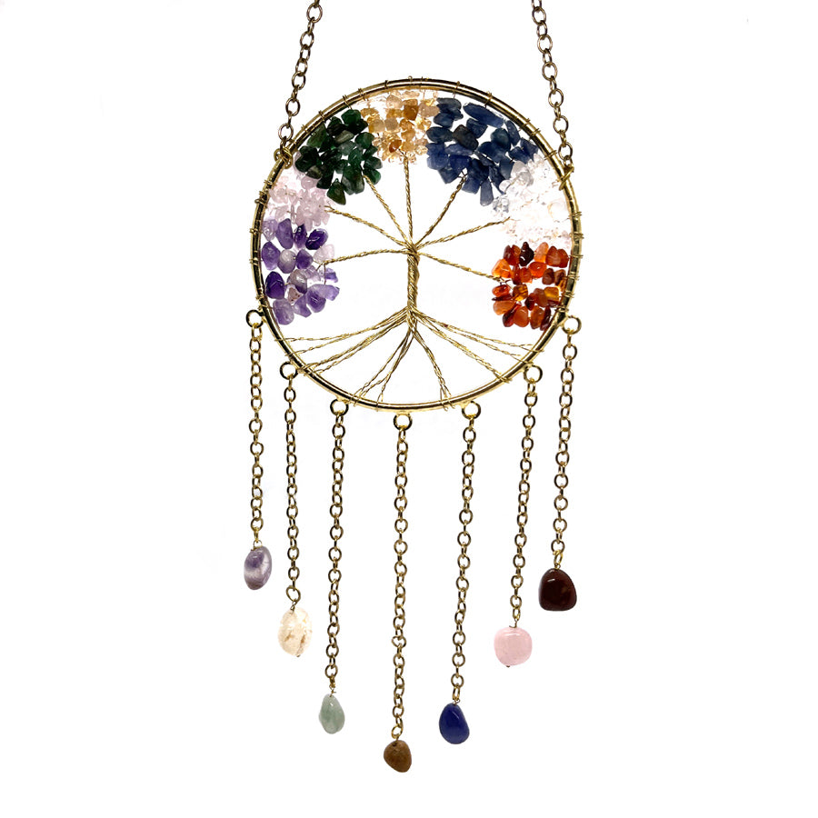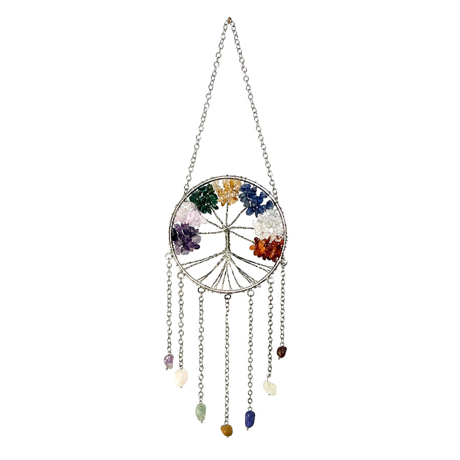Tämä intiassa käsintehty koriste on symboli elämän jatkuvuudesta ja yhteydestä luontoon. Aurinkosiepparin keskiössä on taidokkaasti punottu elämänpuu, jonka lehvästön muodostavat kauniin väriset, hohtavat puolijalokivet. Kehän alareunasta roikkuu seitsemän hiottua kiveä metalliketjuissa.