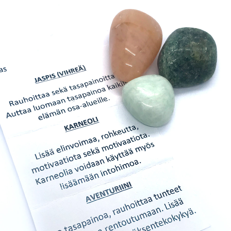 Horoskooppikivi-pakkaukseen kuuluu kolme kiveä onnenkivien valikoimastamme, esimerkiksi: