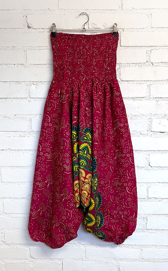 Riikinkukon sulkakuvioilla koristeltu haaremihousu