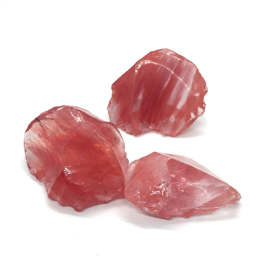Jokainen kirsikkakvartsi raakakivi on ainutlaatuinen ja uniikki. Koko vaihtelee noin 5 x 5 cm kokoluokassa. Kirsikkakvartsin sävyt ovat kirkkaan punaisesta vaaleanpunertavaan, usein sisäisine valonheijastuksineen tai sulaneen lasin muodostamine kuvioineen.