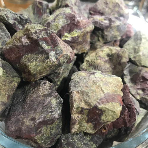 Lohikäärmekivi (tunnetaan myös nimellä Dragon Stone tai Dragon Blood Jasper) on ainutlaatuinen kivi, joka koostuu vihreästä epidootista ja punaisesta piemontiitista, luoden näyttävän, lohikäärmeen suomuja muistuttavan kuvioinnin. Se on voimakas elinvoiman ja rohkeuden kivi, ja sitä arvostetaan sen kyvystä vahvistaa itsevarmuutta, tuoda elämäniloa ja tukea tavoitteiden saavuttamista.