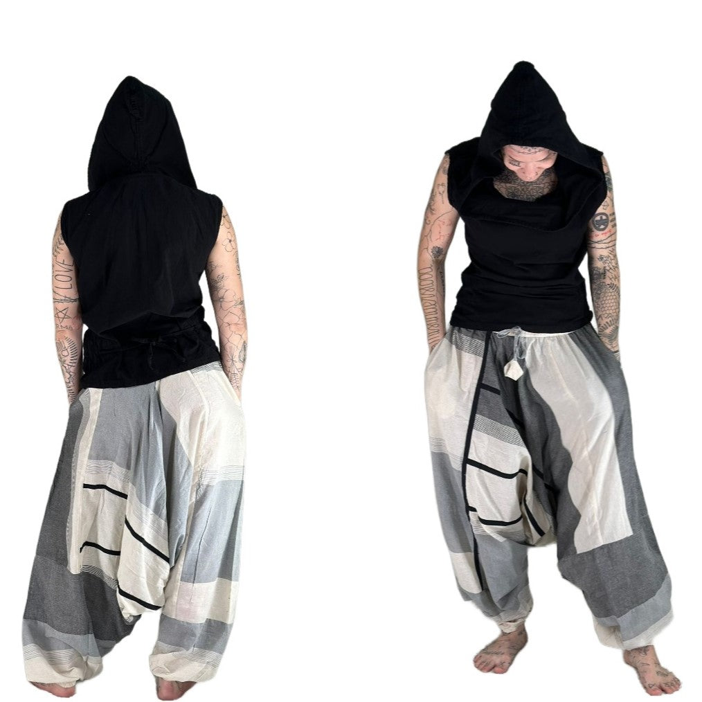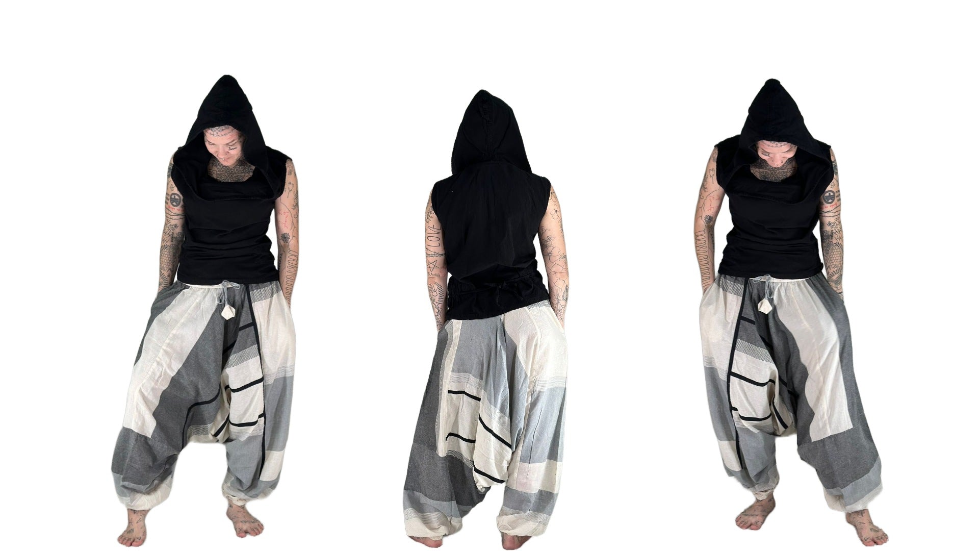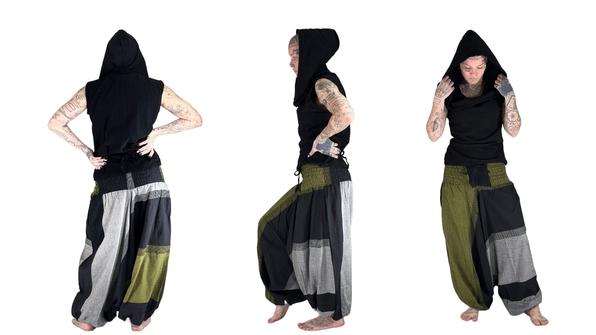 Raja-housut ovat suositut nepalilaiset haaremihousut, joissa kohtaavat selkeä muotokieli ja käytännöllisyys. Unisex-malli istuu mukavasti useille vartalotyypeille, ja napakka yläosan rypytys sekä kiristettävä vyötärönauha takaavat hyvän istuvuuden.