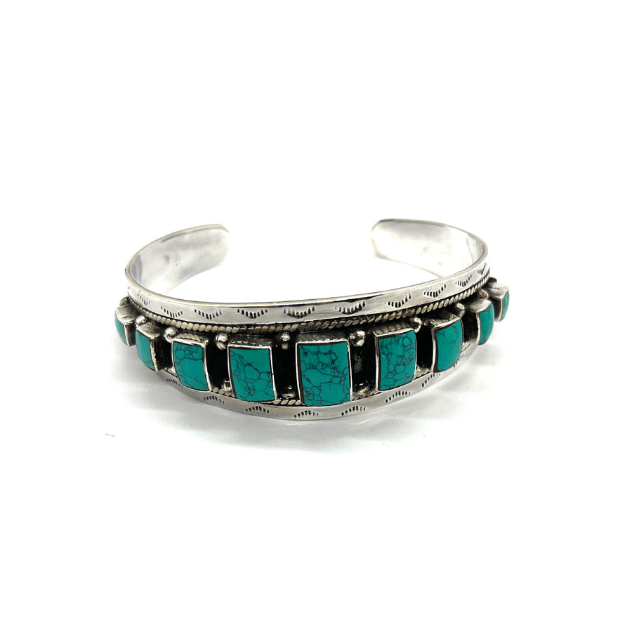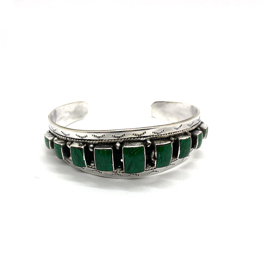 Kauniisti muotoiltu ranneke on valmistettu hopeanhohtoisesta korumetallista.