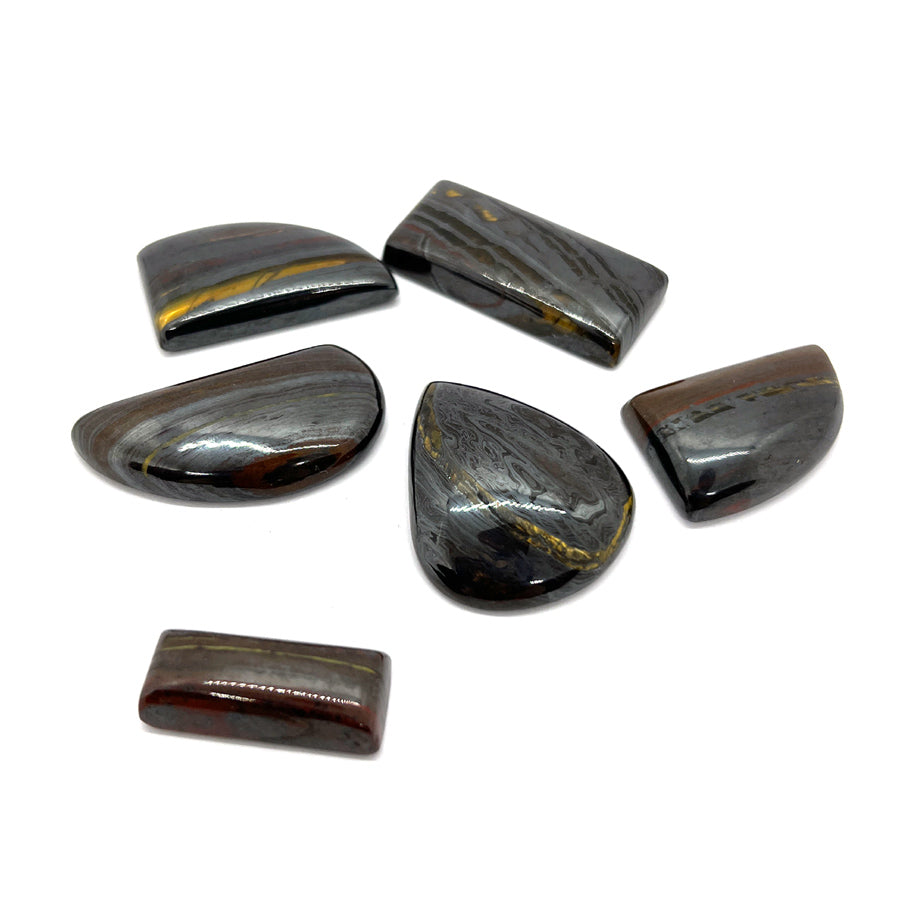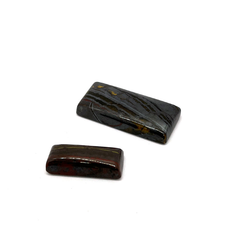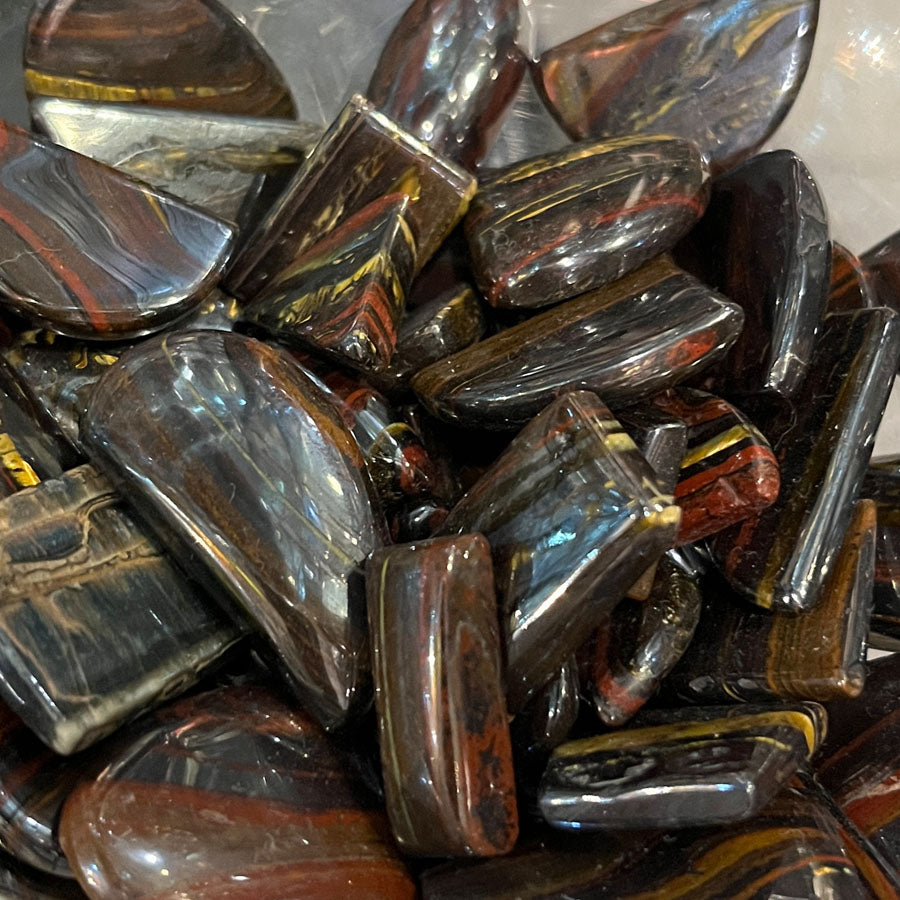 Rautatiikerinsilmä on ainutlaatuinen ja voimakas luonnon seosmineraali, joka koostuu kolmen eri kiven yhdistelmästä: Tiikerinsilmästä (kultainen/keltainen hohto), Punaisesta Jaspiksesta (punertavat juovat) ja Hematiitista (tummanruskea/musta, metallinen pohja). Tämä yhdistelmä on erittäin ainutlaatuinen: Tiikerinsilmän ja Jaspiksen elinvoimainen energia yhdistyy Hematiitin erittäin voimakkaaseen maadoitukseen ja suojeluun.