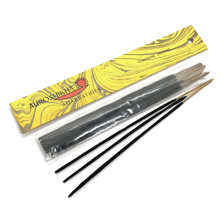 Auroshikha Tuberose -suitsuke tarjoaa lumoavan ja aistikkaan tuoksuelämyksen. Tuberose, eli tuoksuilangon kukka, on tunnettu sen rikkaasta, hieman makeasta ja hienostuneesta kukkaisaromistaan. Sen syvä tuoksu on täydellinen luomaan rauhoittavan ja sensuellin tunnelman, auttaen lievittämään stressiä ja edistämään syvää rentoutumista. Se on ihanteellinen valinta illanviettoon, meditaatioon tai yksinkertaisesti aistien hemmotteluun.