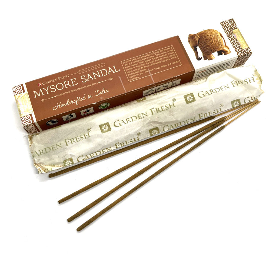 Garden Fresh Mysore Sandal premium masala -suitsuke tuo kotiisi yhden maailman arvostetuimmista tuoksuista. Tämä suitsuke on valmistettu aidosta santelipuusta, jonka tuoksu on pehmeä, kermainen ja lämpimän puumainen. Mysore Sandalin ajaton tuoksu on käytetty vuosisatoja meditaatiossa ja pyhissä rituaaleissa, sillä sen uskotaan rauhoittavan mieltä, edistävän keskittymiskykyä ja luovan syvän rauhan tunteen.