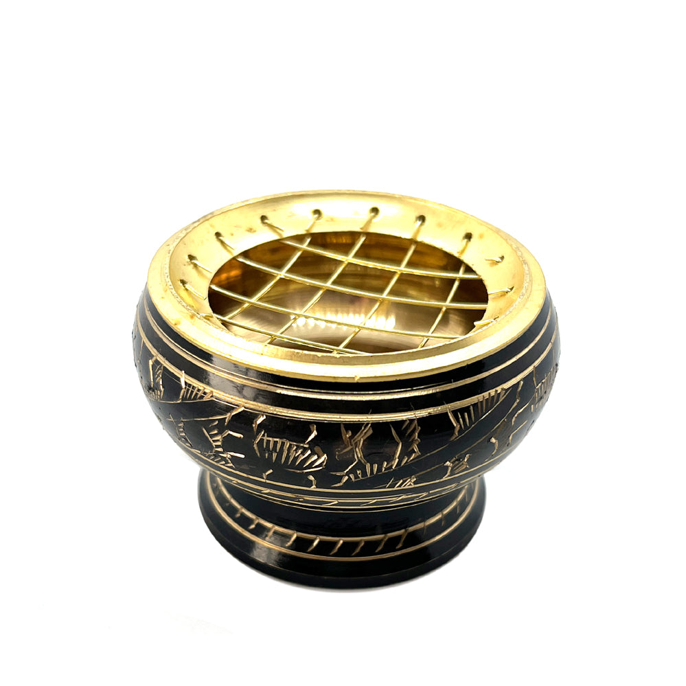 Astian muotoinen suitsuketeline on varustettu irrotettavalla ritilällä, joka mahdollistaa suitsukkeen tasaisen palamisen ja estää tuhkan leviämisen.