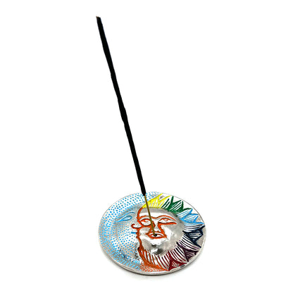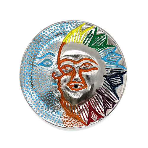 Tämä värillinen alumiininen suitsuketeline yhdistää Kuun ja Auringon symboliikan, edustaen tasapainoa ja energian kiertoa.
