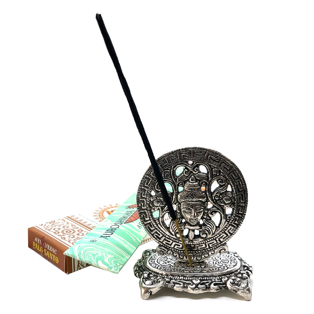 Tämä tyylikäs metallinen suitsuketeline on valmistettu kestävästä alumiiniseoksesta ja tarjoaa yhden paikan suitsuketikulle. Koristeellinen itämainen muotoilu.