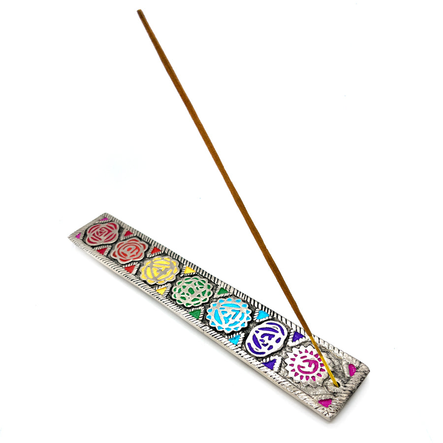 Tämä suitsuketeline yhdistää chakrojen symboliikan ja värit, tuoden tasapainoa ja harmoniaa suitsukkeenpolttoon. Jokainen väri edustaa kehon energiakeskuksia