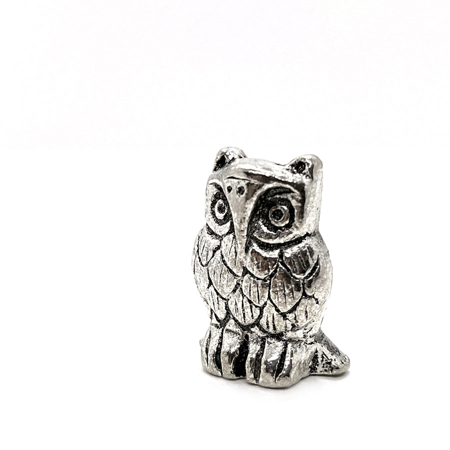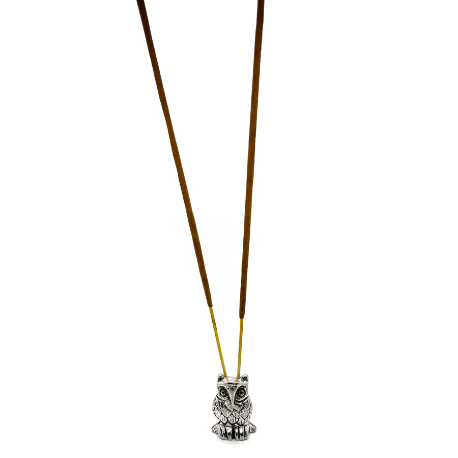 Tämä pieni alumiininen pöllöfiguuri toimii suitsuketelineenä yhdelle suitsuketikulle. Pöllö-symboli edustaa viisautta, intuitiota ja suojelusta.
