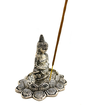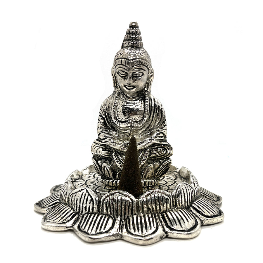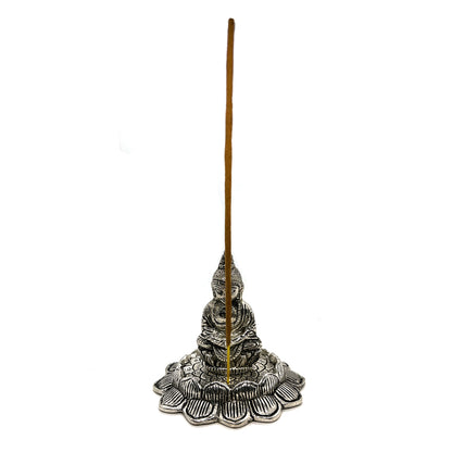 Alumiininen Meditoiva Buddha toimii sekä suitsuketelineenä että koristepatsaana, tuoden rauhoittavaa ja hengellistä tunnelmaa tilaan.