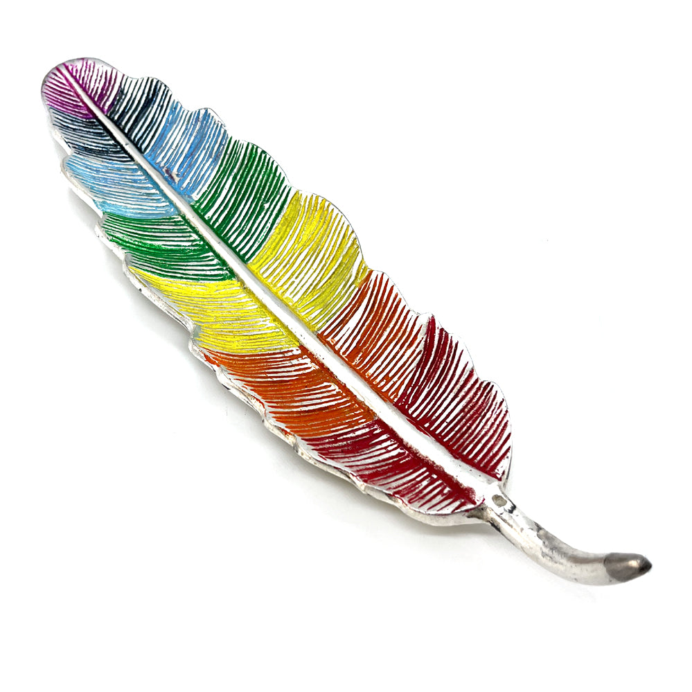 Tämä alumiiniseoksesta valmistettu suitsuketeline yhdistää sulan elegantin muodon ja chakrojen värikoristelun, tuoden sekä esteettisyyttä että symboliikkaa suitsukkeenpolttoon.