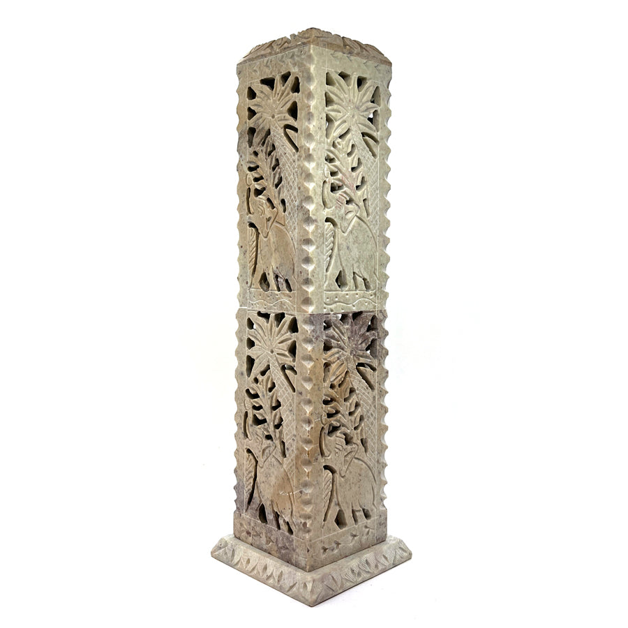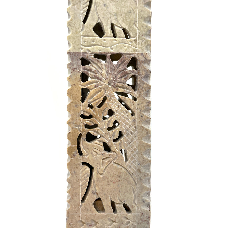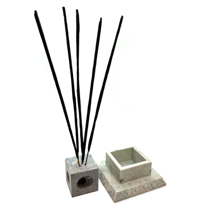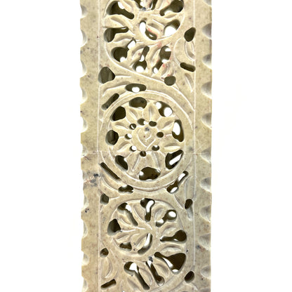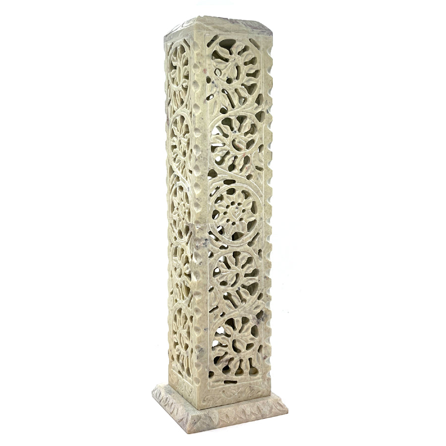 Valmistettu korkealaatuisesta vuolukivestä, joka kestää lämpöä ja käyttöä. Pitsinomainen kuviointi tuo esiin intialaisen käsityötaidon. Pitkä ja elegantti muoto mahdollistaa suitsukkeen tasaisen ja turvallisen palamisen. Vahva ja ajaton, sopii pitkäaikaiseen käyttöön.