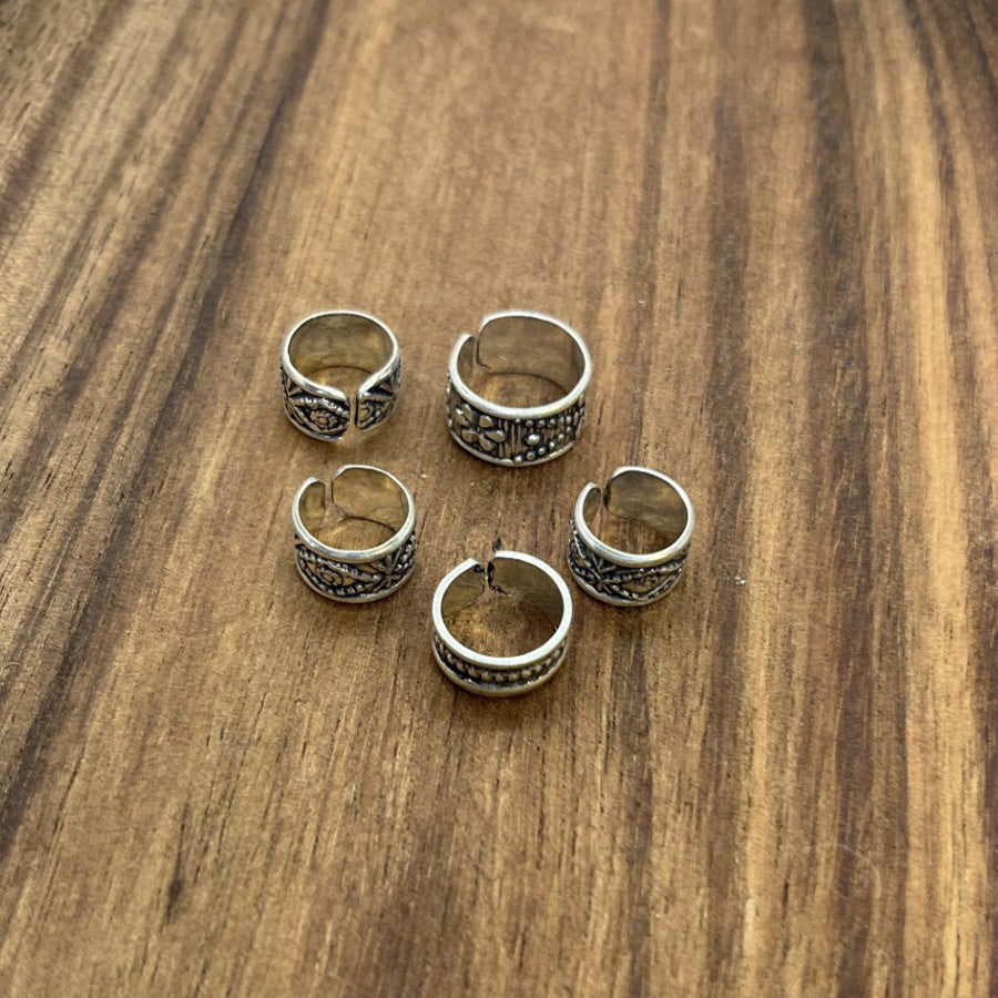Jokainen paketti sisältää viisi erityistä, käsintehtyä metallirengasta, jotka tuovat hiuksiisi koristeellisen yksityiskohdan. Koristelu ja tarkat koot vaihtelevat hieman, mikä tekee juuri sinun setistäsi erityisen.