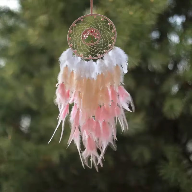 Tämä unisieppari ei vain suojaa unia, vaan tuo mukanaan rauhoittavaa valoa, tehden jokaisesta tilasta harmonisen ja inspiroivan. Täydellinen voimaesineeksi tai lahjaksi, kun haluat kutsua lämpöä, kauneutta ja unelmia.
